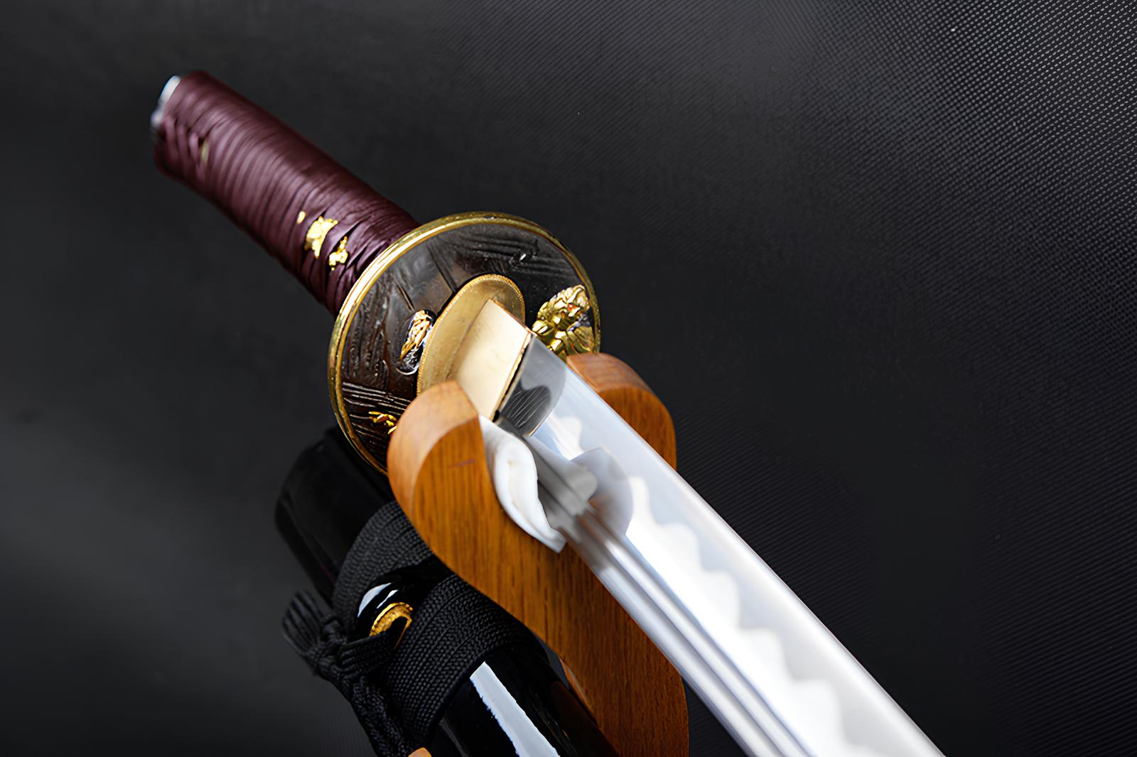 A lâmina desta Katana é forjada à mão e polida com 12 procedimentos diferentes, utilizando aço carbono de extrema pureza. Este processo milenar garante a máxima eficiência e resistência da lâmina.